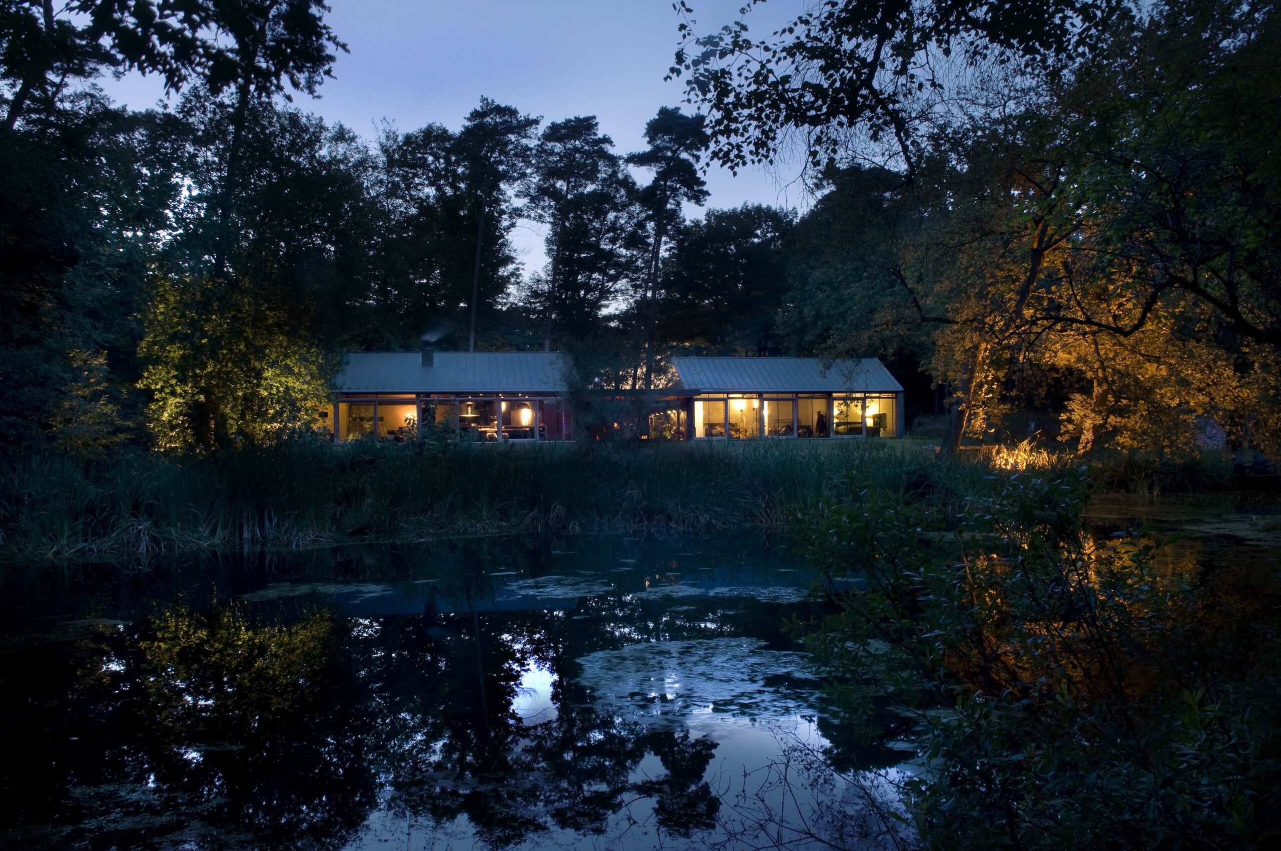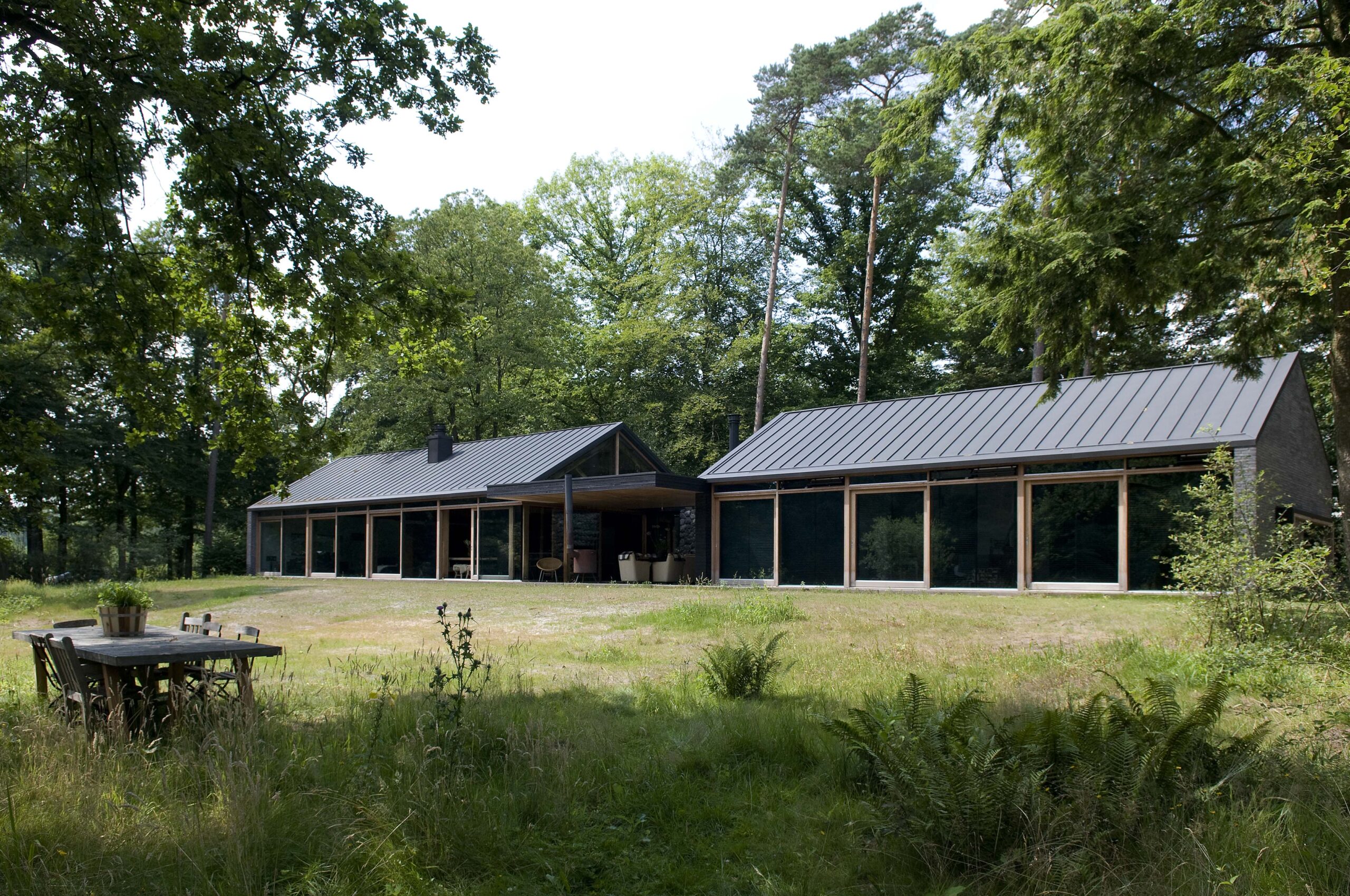 De bewoners zijn echte buitenmensen; ze willen niet alleen de natuur zien, maar deze ook ruiken en voelen. Ze kochten een oud huis op een bosperceel met een prachtig, natuurlijk ven. Het was de perfecte locatie, maar in het bestaande huis was het gewenste intensieve contact met de omgeving niet mogelijk.