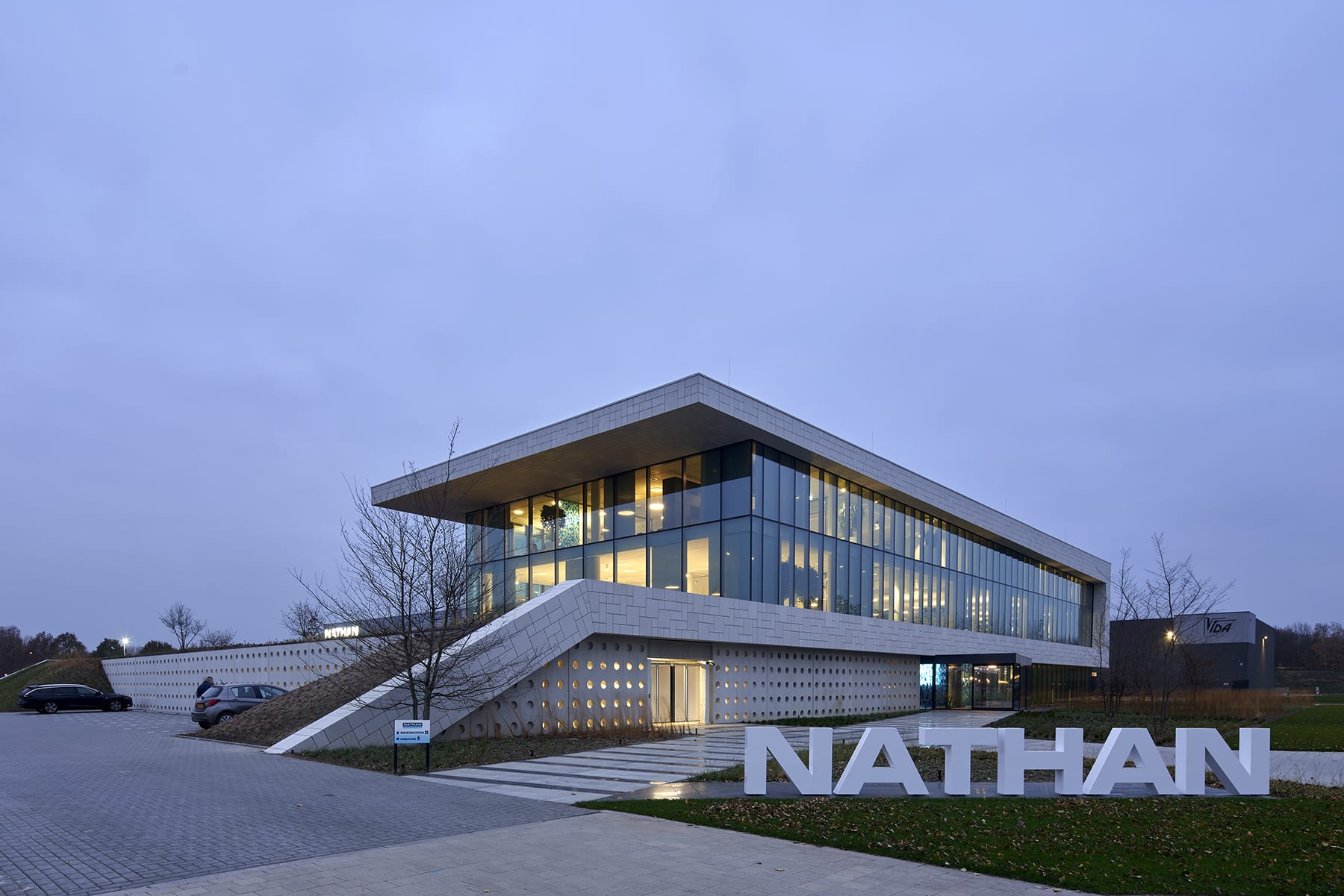 Het hoofdkantoor met kennis- en expertisecentrum is hét nieuwe 3d-visitekaartje van Nathan. Het gebouw is niet alleen een kantoorgebouw, maar ook een tentoonstelling van de duurzame klimaattechniek van Nathan. Een voorbeeldproject voor de integratie van hoogwaardige architectuur en innovatieve technologie.