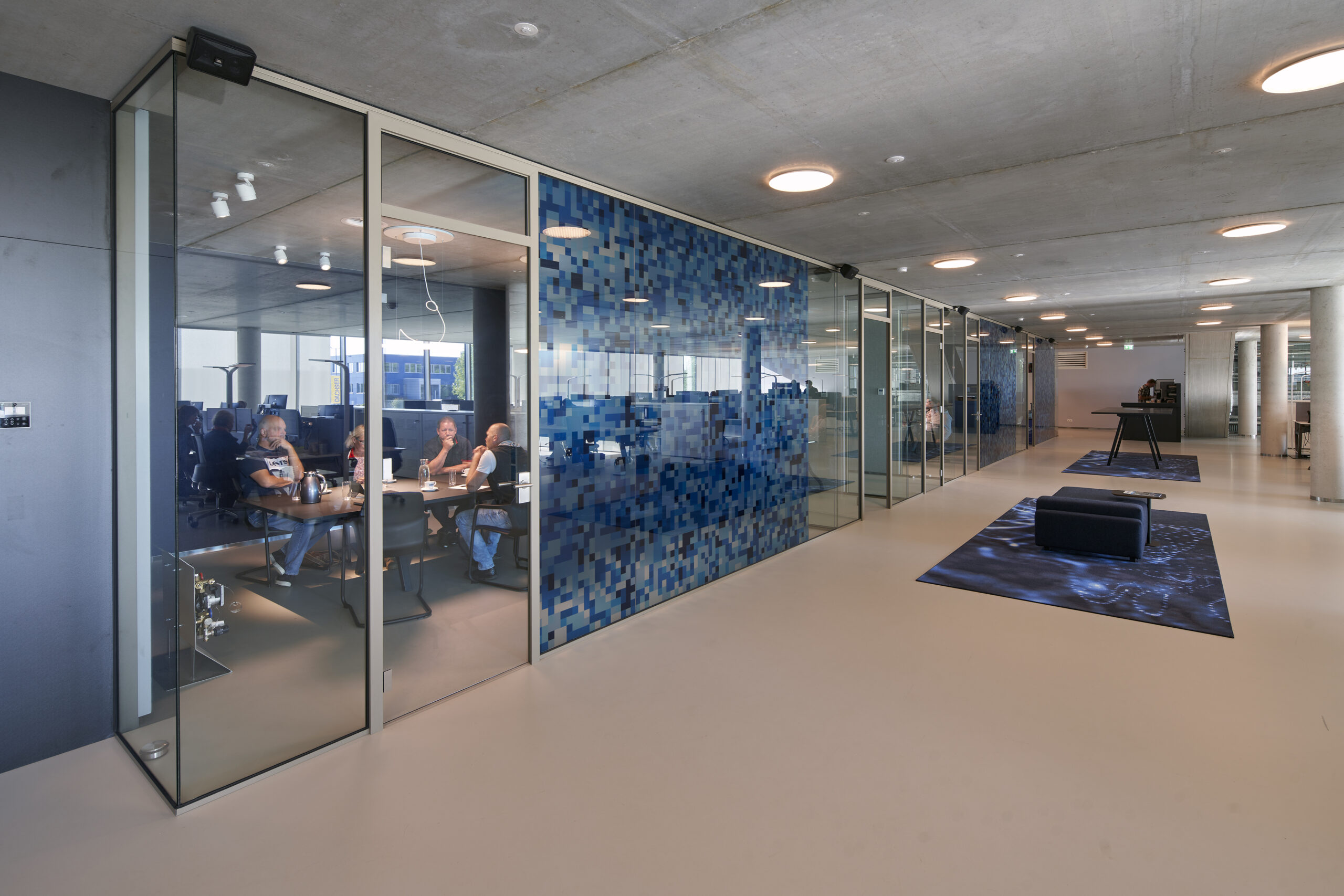 De keuze voor betonkernactivering zorgt voor een zeer duurzaam gebouw dat techniek en design optimaal combineert. Door het in de betonvloer opnemen van de meeste installaties en het weglaten van het gebruikelijk verlaagd plafond komt het schoonwerk betonnen plafond in zicht en kan ongestoord warmte-uitwisseling plaatsvinden tussen de vloer/plafond en de ruimte. Alleen de in het beton gestorte roosters voor luchtbehandeling, armaturen voor de basisverlichting en de sprinklerkoppen blijven in het zicht. Een strak beeld, minimaal gebruik van materiaal en een stabiele temperatuur resulteert.